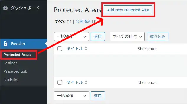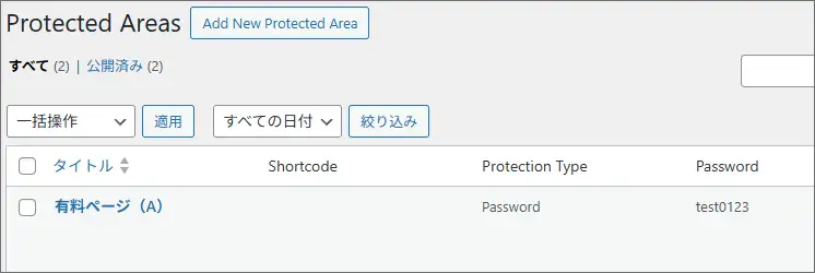 2)パスワード付のエリアを作る