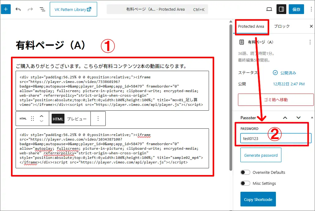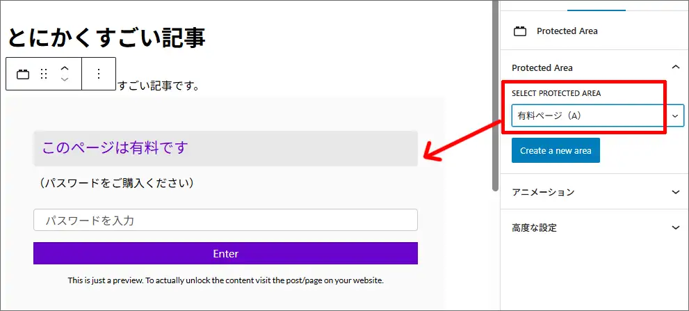②このページ(エリア)にパスワードを付ける