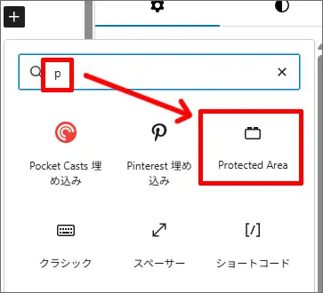 ▼検索で「p」と入れると「Protected Area」が表示されるので選択
