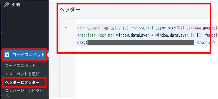 管理画面[Code Snippets(コードスニペット)]
