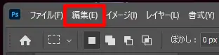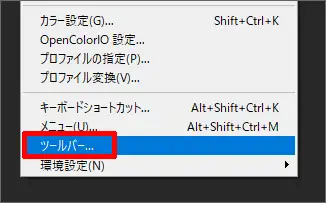 ①上のメニューから「編集」 →そして一番下の方にある「ツールバー」... を開きます。